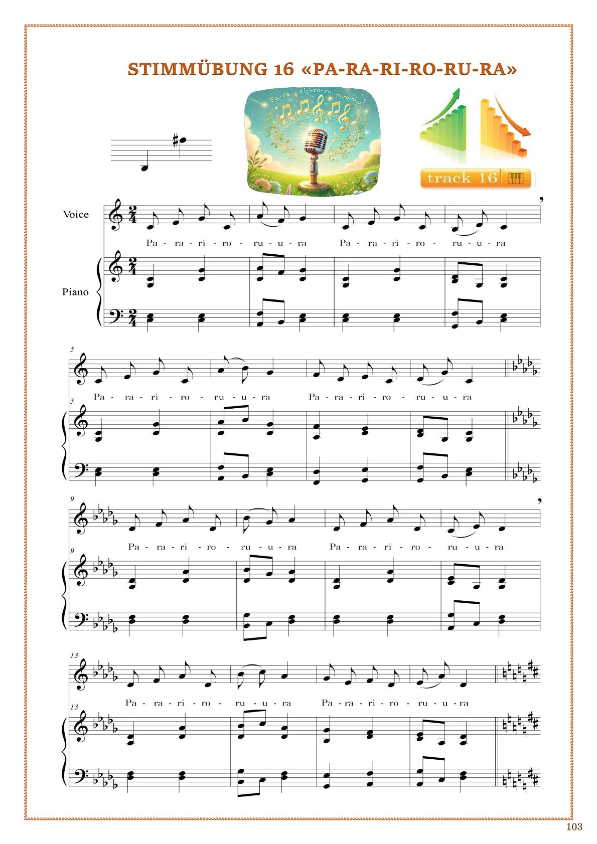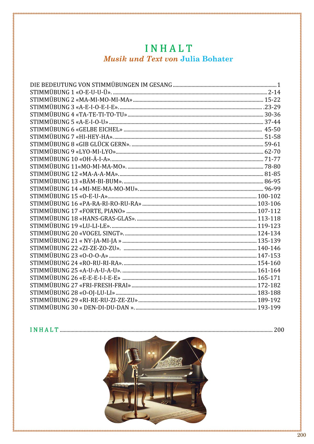 Sie enthält 30 sorgfältig konzipierte Gesangsübungen, die auf die Entwicklung zentraler Aspekte der Gesangstechnik abzielen.