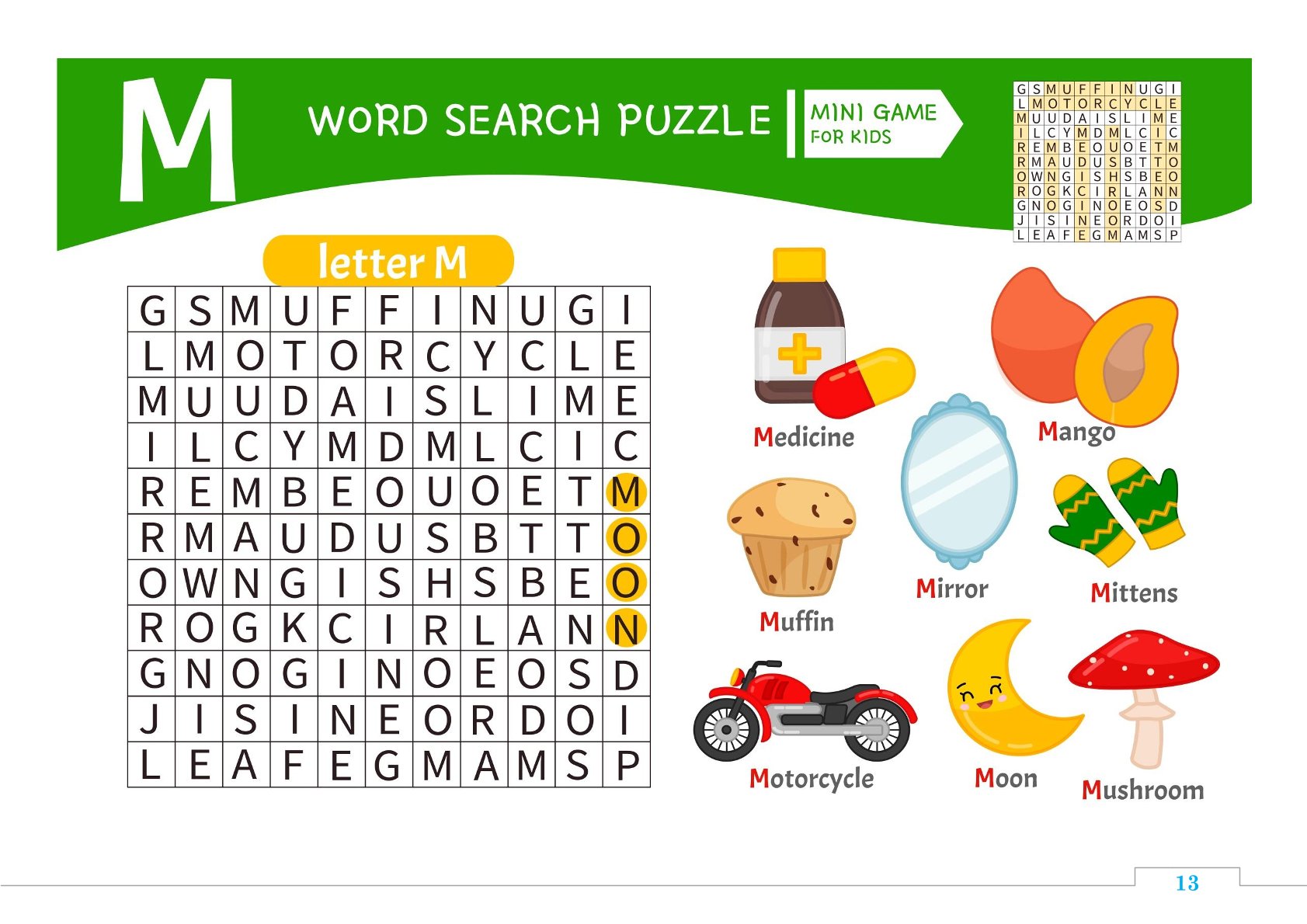 🤲 Skill development – searching for words and coloring improves concentration, visual perception, and fine motor skills.