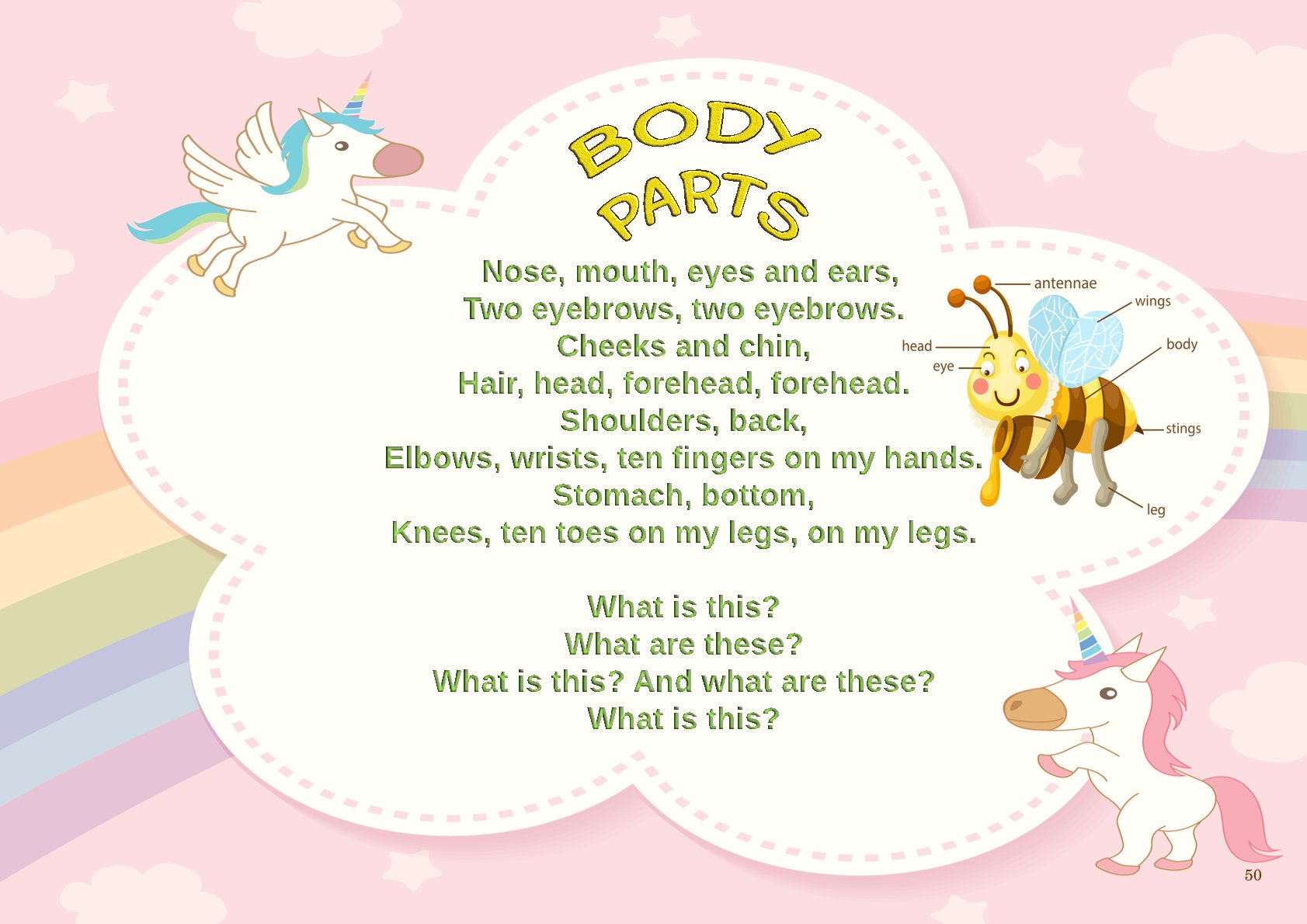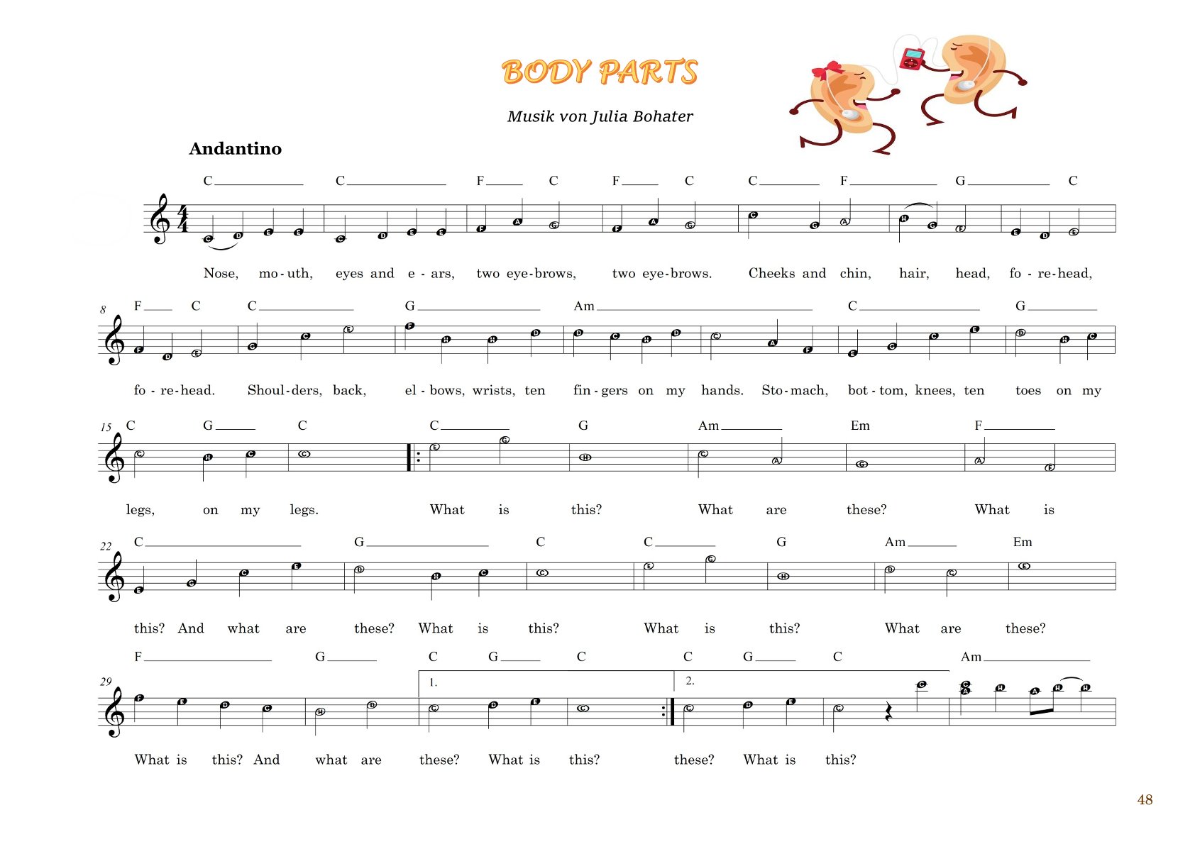 Zusätzlich sind die Melodien mit englischen Texten versehen, sodass Kinder parallel Grundlagen der englischen Sprache (Wortschatz und Grammatik) vertiefen können.