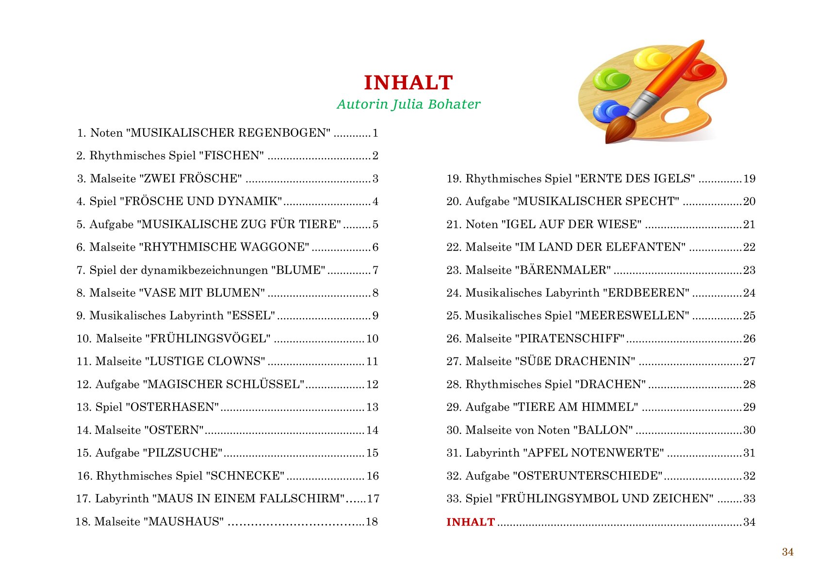 „Frühlingsfarben“ spiegelt die Schönheit und Harmonie des Frühlings in musikalischen und künstlerischen Aufgaben wider. Auf jeder Seite erwarten die Kinder liebevoll gestaltete Illustrationen von Frühlingslandschaften und Naturmotiven 🌷🐦, die sowohl lehrreich als auch spannend sind. Die Frühlings-Thematik vermittelt nicht nur musikalische Inhalte, sondern fördert auch eine positive Stimmung von Neubeginn und Aufbruch.