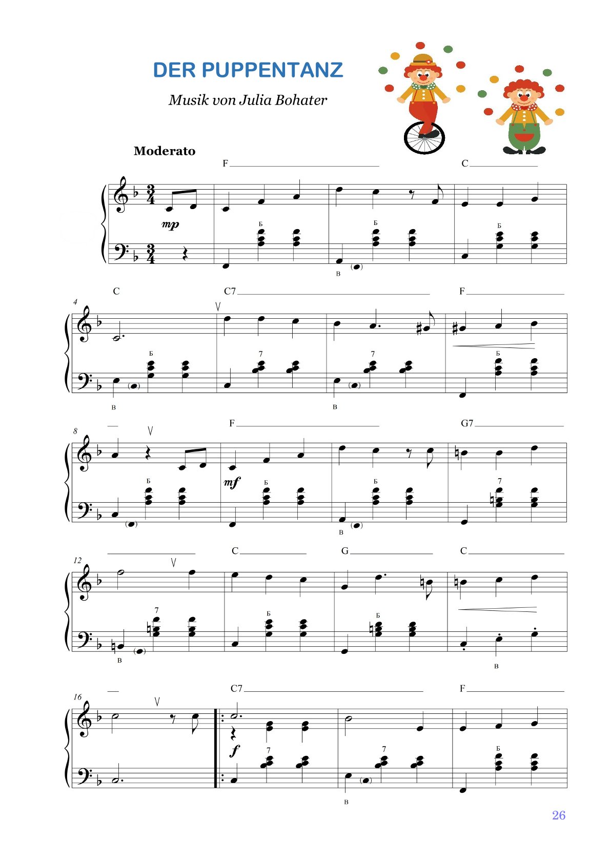 Die Sammlung bietet Stücke von spielerisch-heiteren Melodien bis hin zu jazzigen und lyrischen Miniaturen. Werke wie „Pferdereiten“, „Spielzeugball“ und „Sonnenstrahl“ bringen nicht nur Nutzen, sondern auch Freude und fördern Fantasie und musikalisches Gehör.