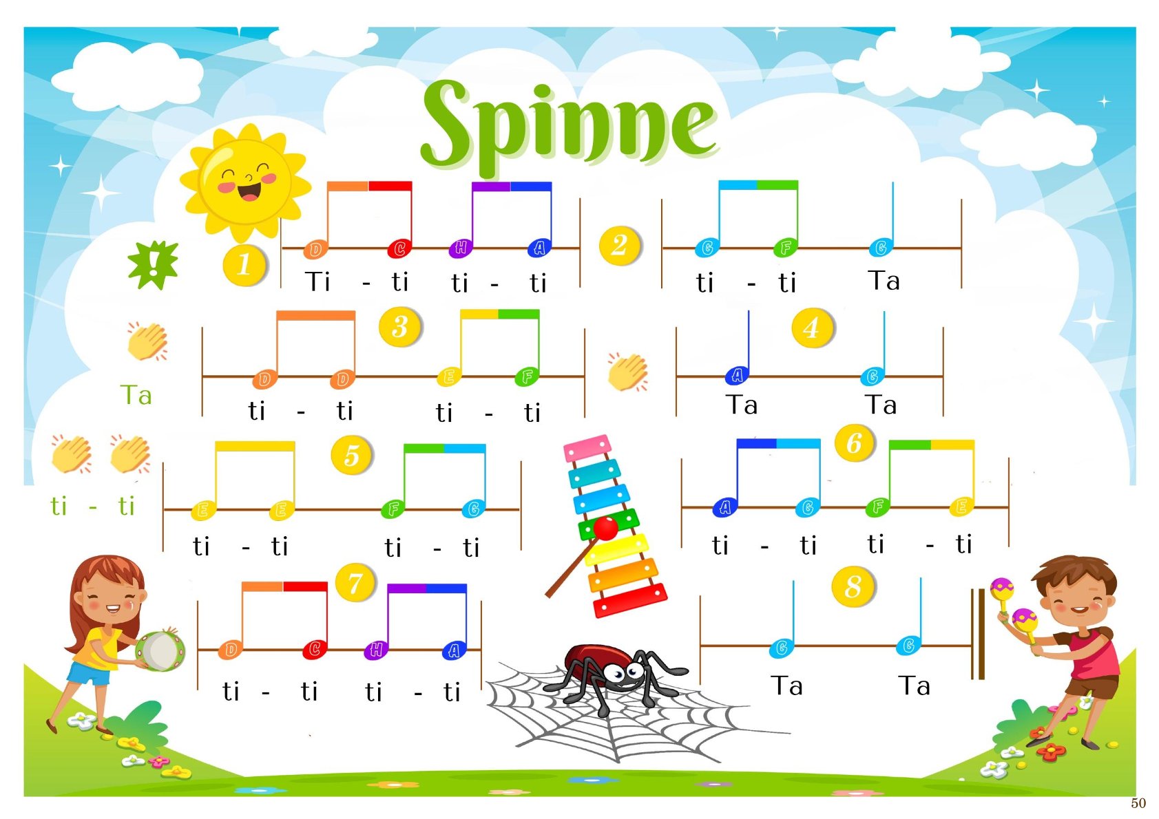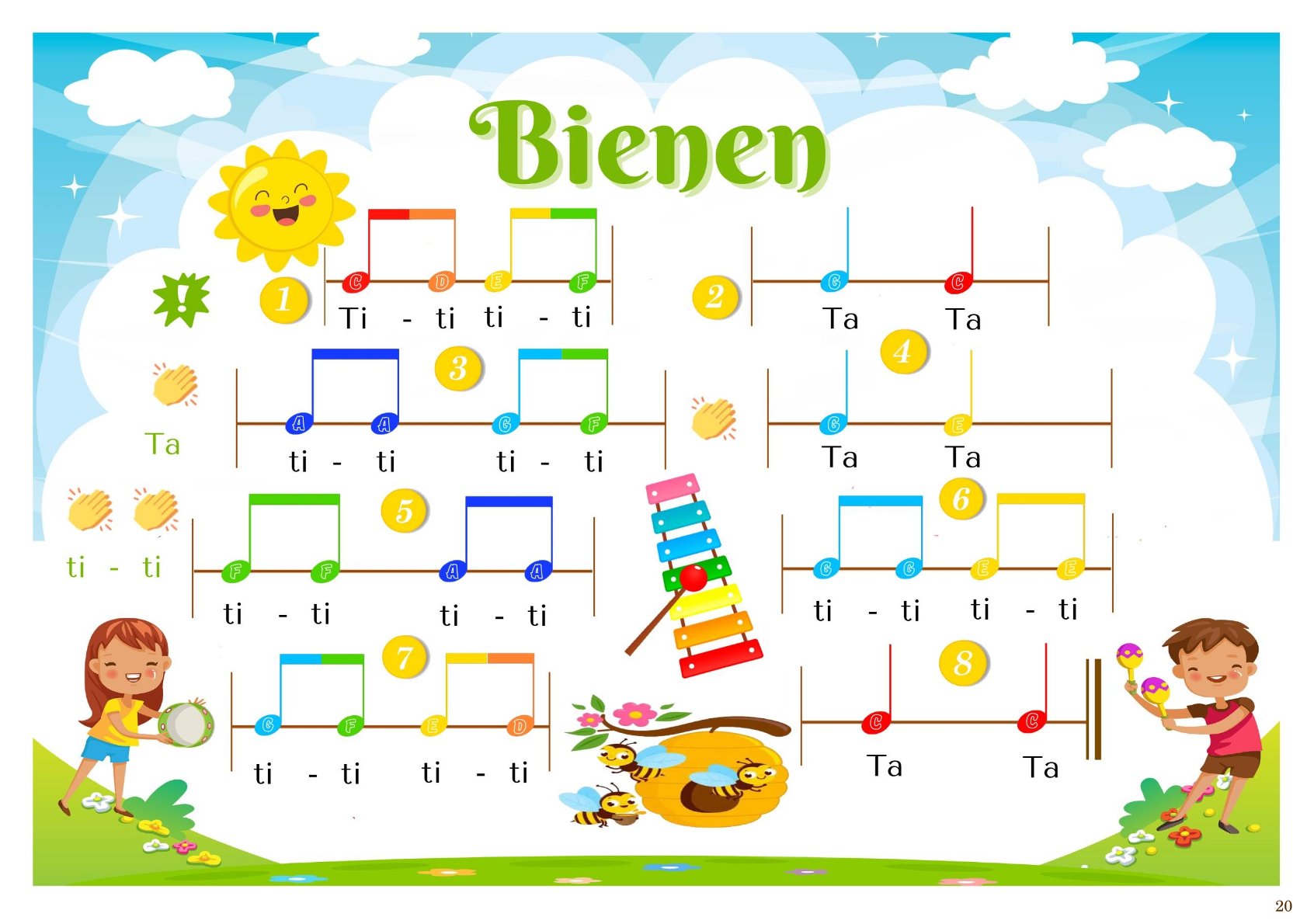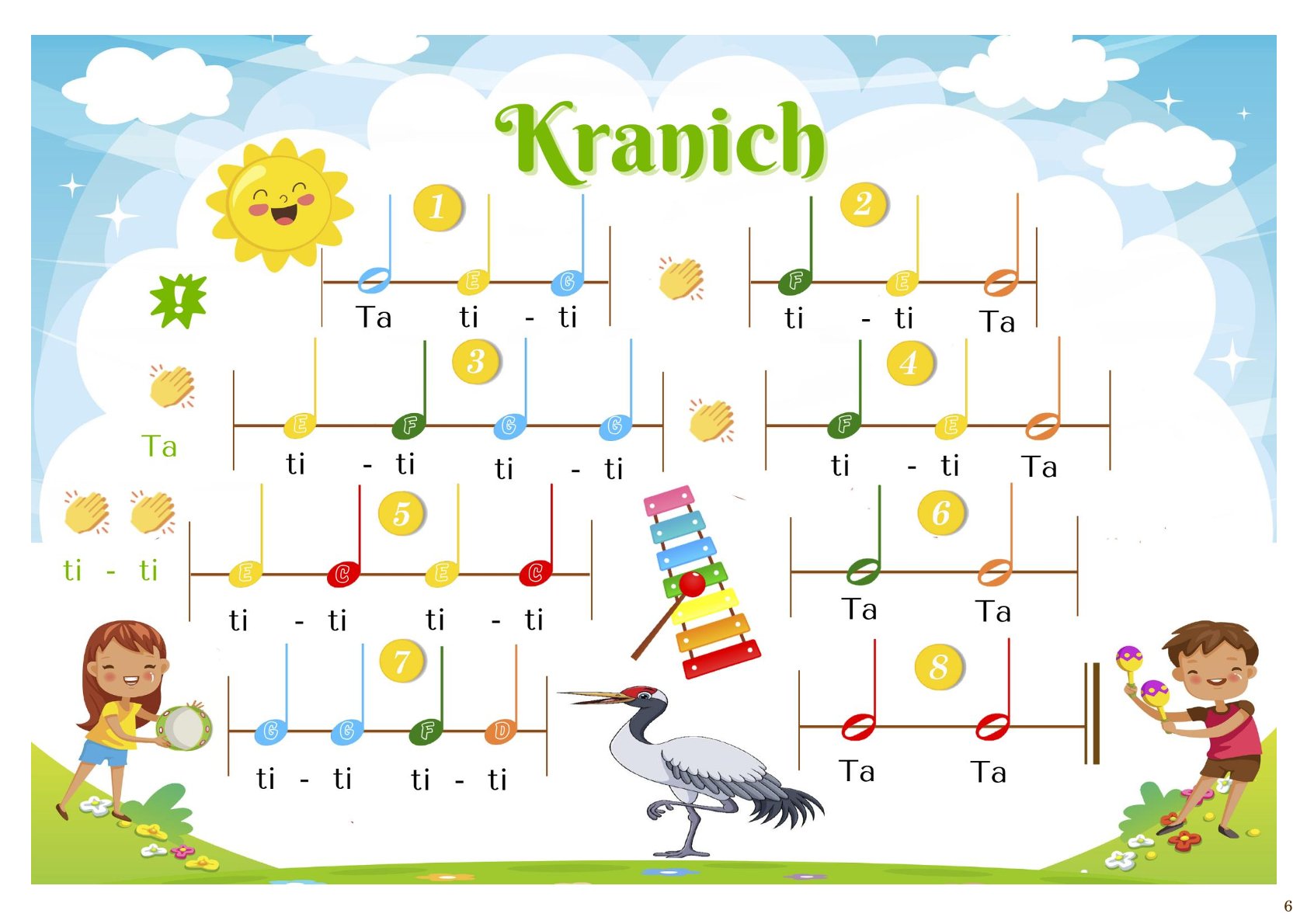 🎨 Farbig dargestellte rhythmische Noten – die bunten Notenwerte machen das Lernen anschaulich und spannend.