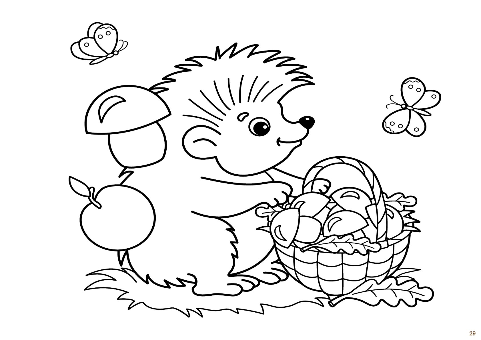 🖍️ Ausmalbilder mit Figuren – jede Übung wird von einem thematisch passenden Bild begleitet. Zum Beispiel in „Das Füchschen“ ein Bild zum Ausmalen mit einem Fuchs.