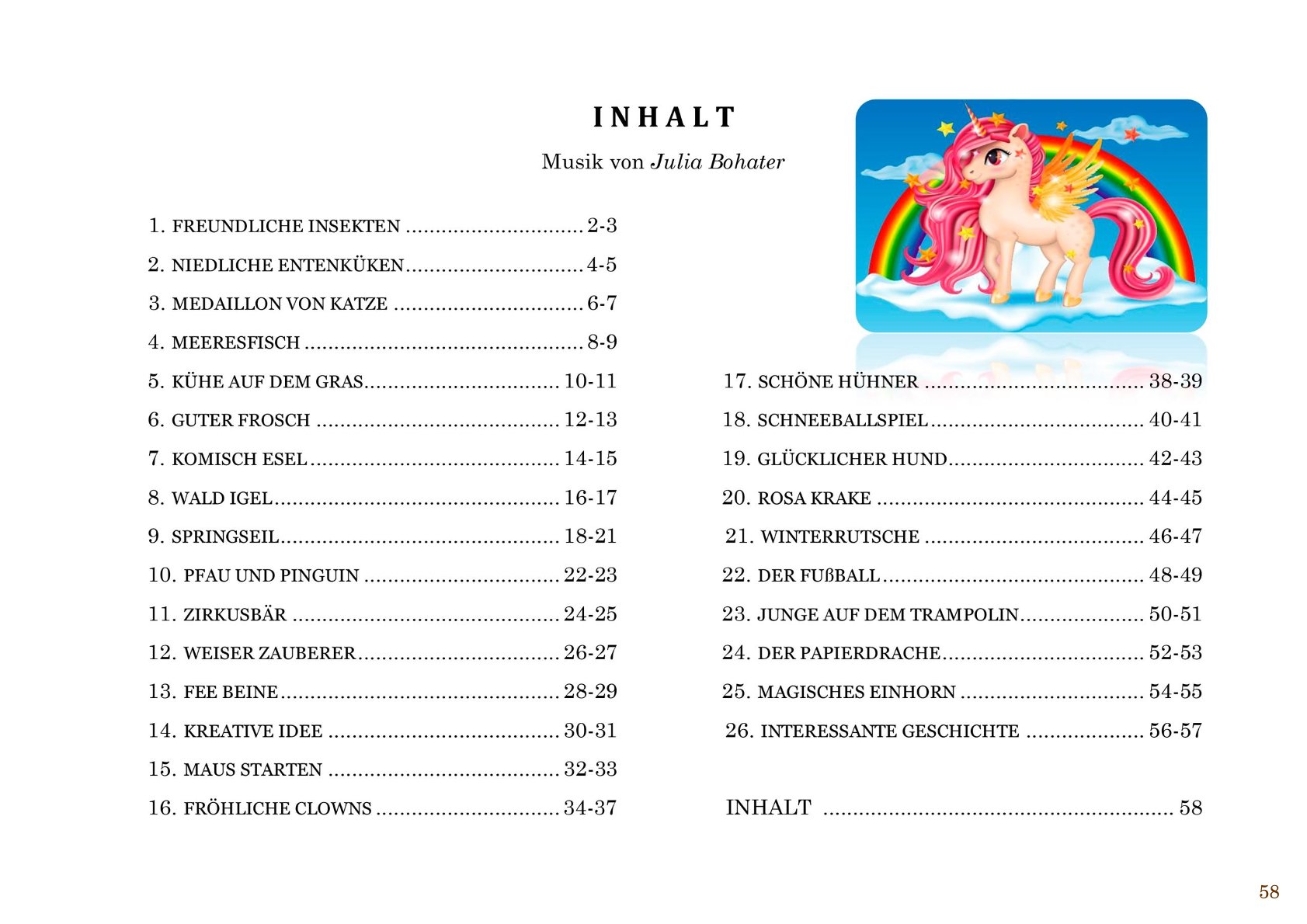 Das Heft enthält originelle Ausmalbilder mit musikalischen Figuren, die den Kindern helfen, jedes Stück mit einem Bild zu verbinden, die Fantasie anzuregen und bildhaftes Denken zu entwickeln.