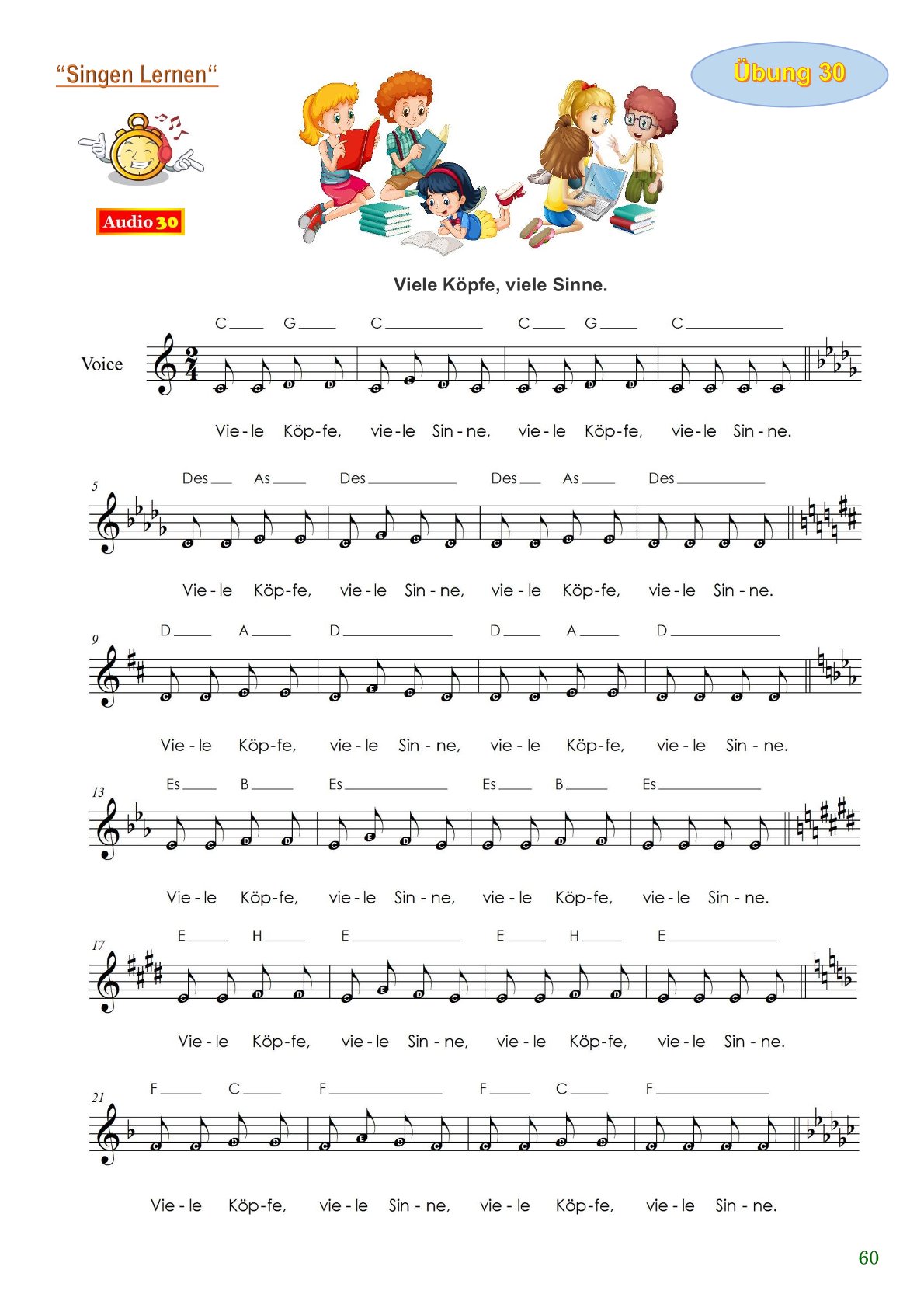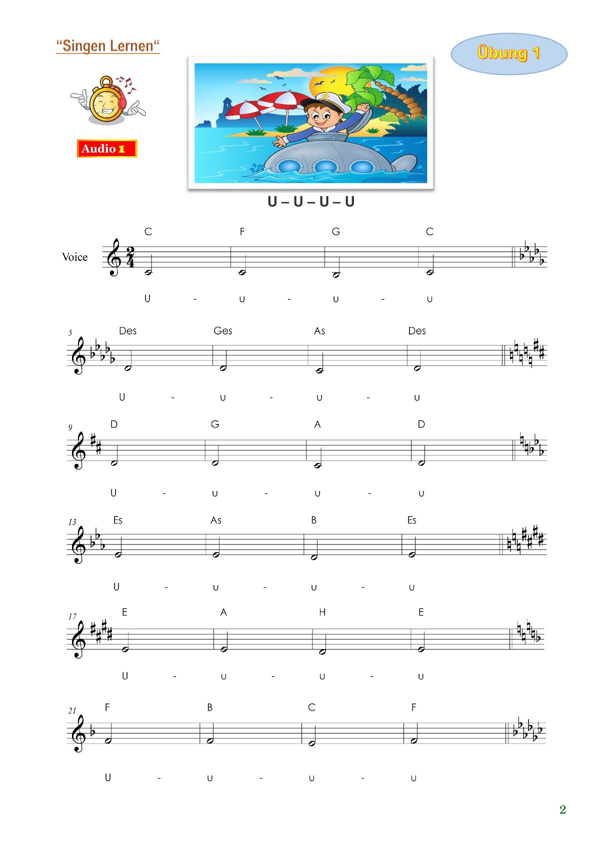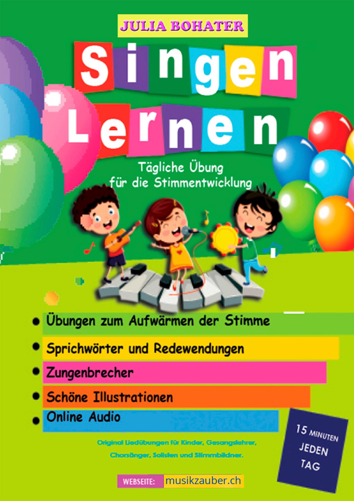 „Singen lernen“ ist eine Sammlung von 55 modernen Gesangsübungen, speziell für Vorschulkinder und Grundschüler.