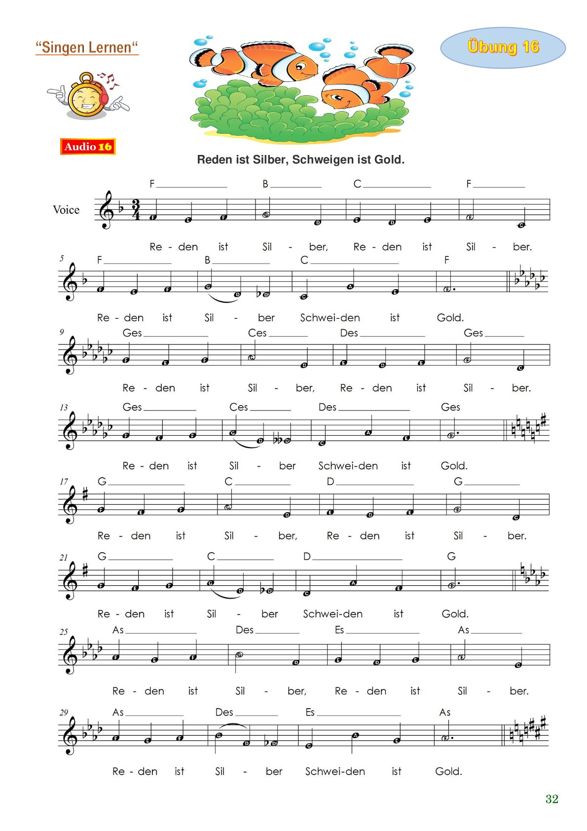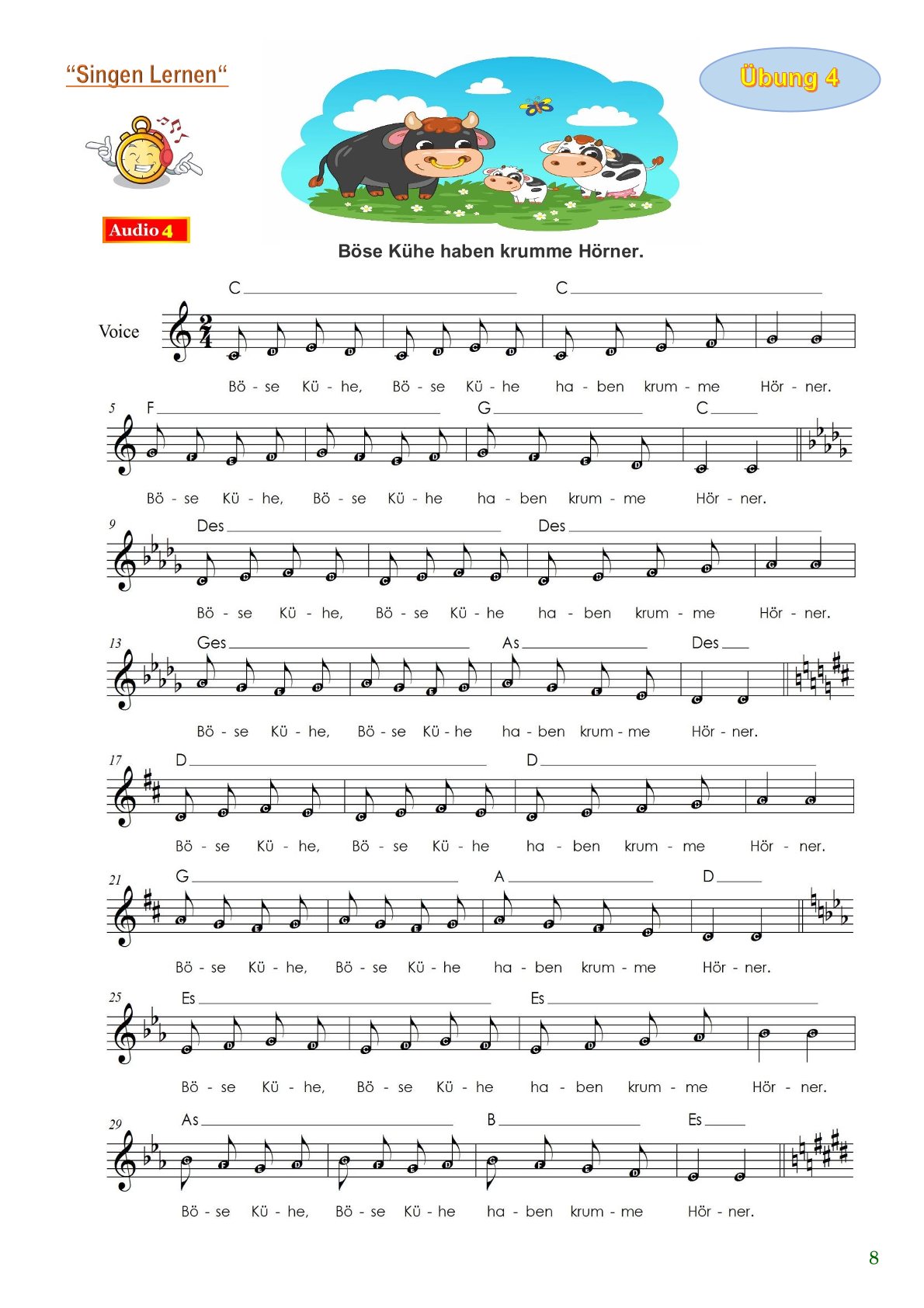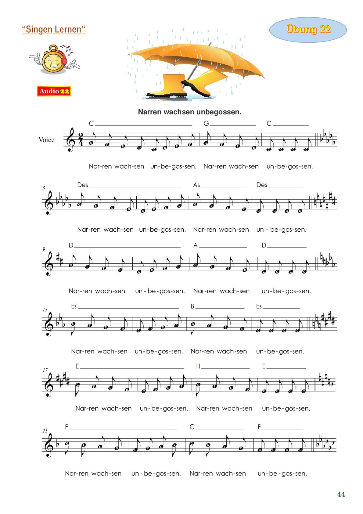 „Singen lernen“ ist eine Sammlung von 55 modernen Gesangsübungen, speziell für Vorschulkinder und Grundschüler.
